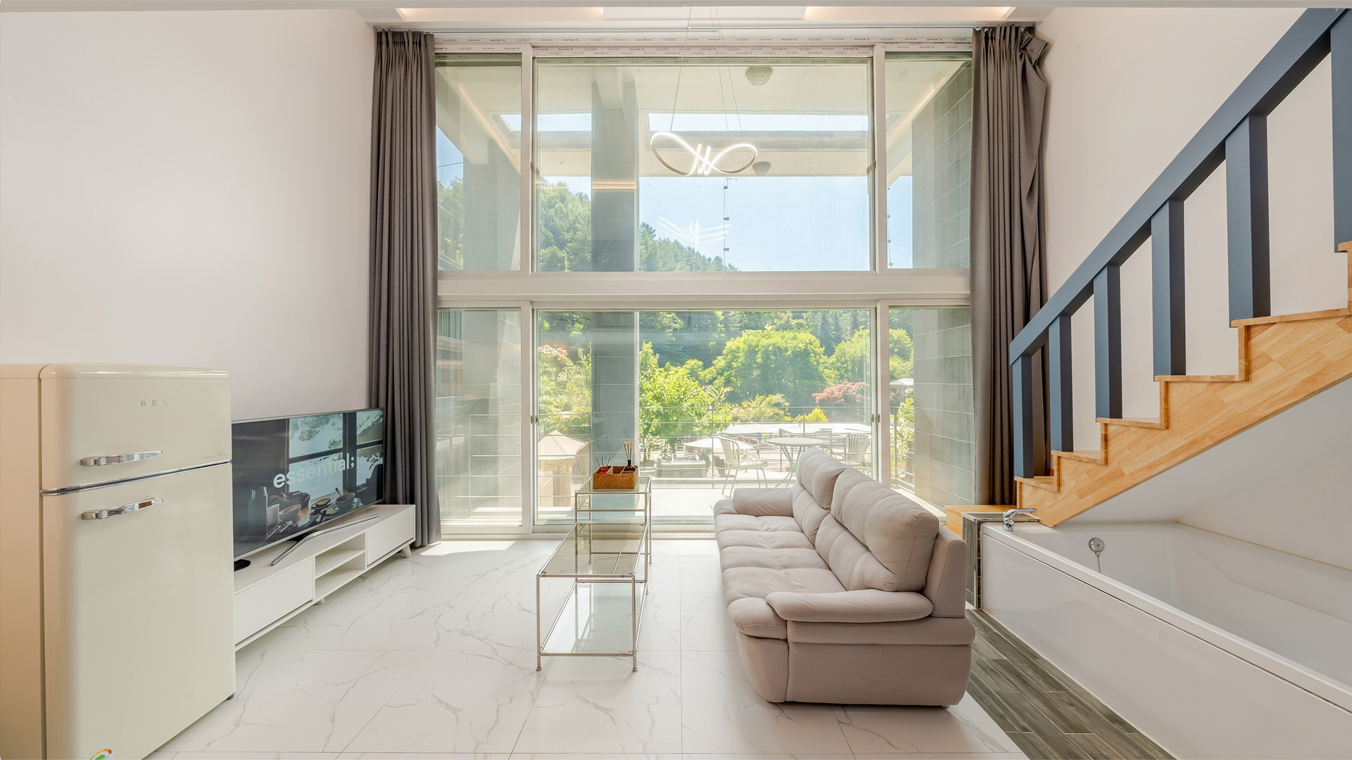 | A-201 (실내풀 이용시(비용별도)사전 문의 필수 | 2 | 4 | 복층형/ 침대룸 거실 주방 화장실 |